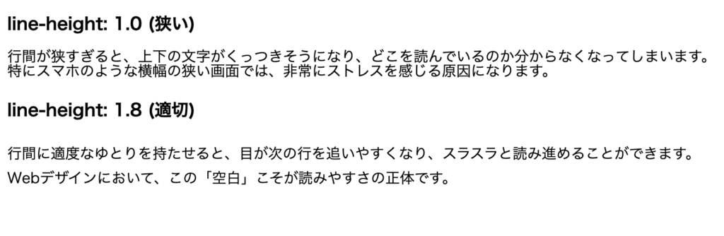 - 1.2〜1.4:見出しなど、短い文章に適した行間。